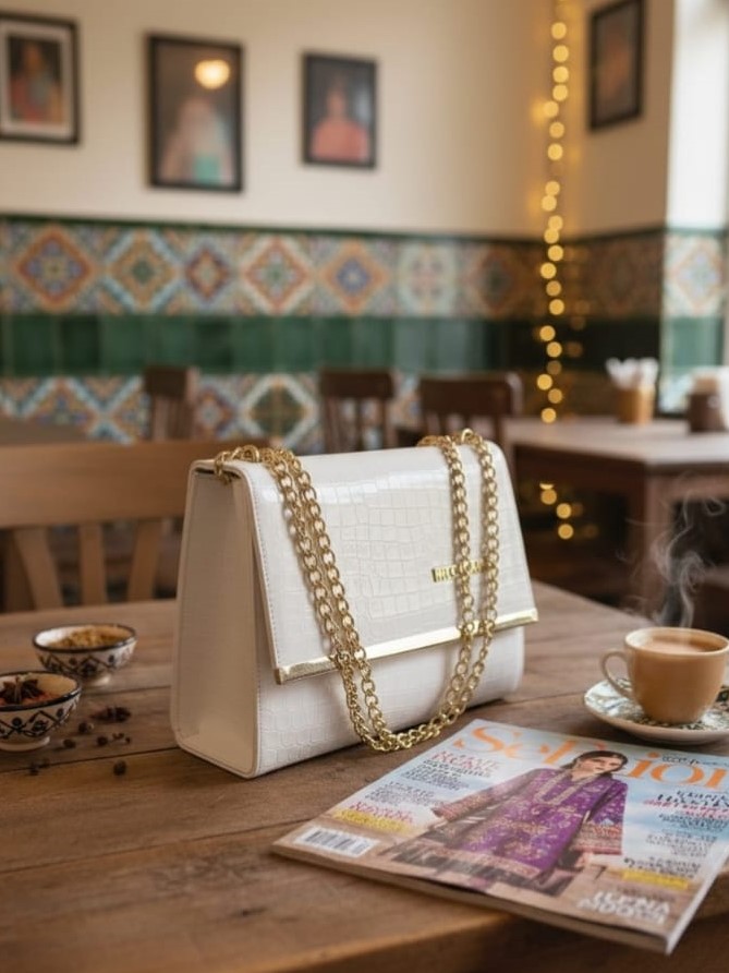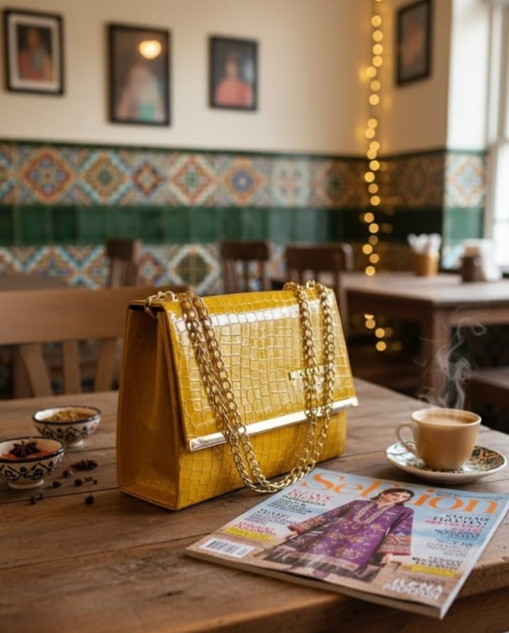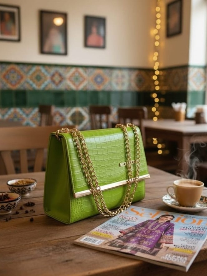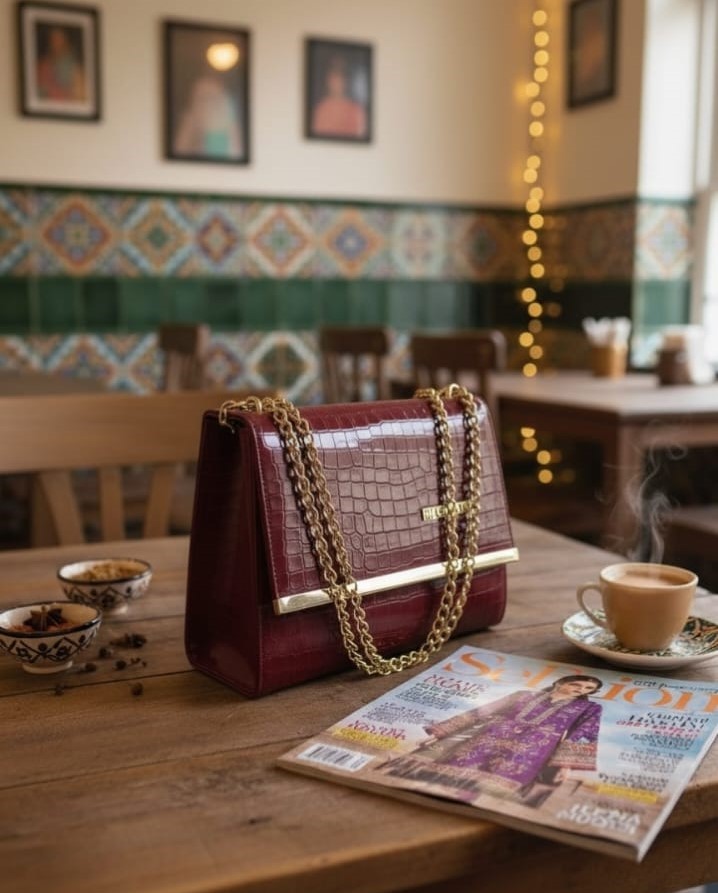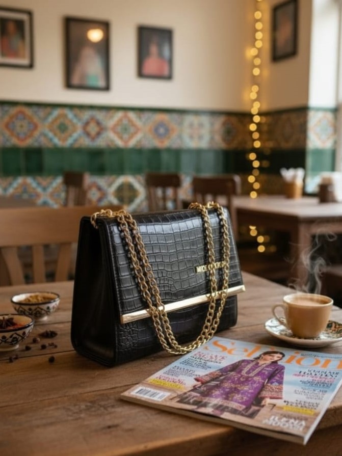 This croc-textured sling clutch is designed to add refined elegance to both formal and casual looks. Crafted from high-quality PU leather with a smooth, durable finish, it offers a luxurious feel while remaining lightweight and easy to carry. The structured rectangular silhouette is enhanced with gold-tone hardware, giving it a premium and polished appearance suitable for parties, weddings, and evening outings. A secure magnetic snap closure opens to a well-organized interior featuring a main compartment and a zip pocket, ideal for storing essentials such as your phone, cosmetics, and small accessories. The soft fabric lining ensures durability and comfort during use. Complete with a detachable and adjustable metal strap, this clutch can be styled as a shoulder bag or sling, making it a versatile and stylish choice for modern women.