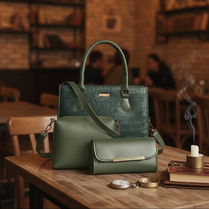 This croc-textured luxury 3-piece tote set is designed for women who seek refined style with everyday functionality. Crafted from high-quality PU leather, the set includes a spacious tote bag, a matching hand pouch, and an additional accessory piece to keep your essentials organized. The structured design offers generous storage while maintaining a sleek and elegant appearance. A secure main zipper closure protects your belongings, while the inner zip compartment helps separate daily essentials with ease. Comfortable top handles allow for effortless carrying throughout the day. The croc-embossed texture adds depth and a premium finish, making this set suitable for office wear, formal settings, and casual outings alike. Available in multiple stylish colors, this versatile set blends timeless elegance with modern practicality.