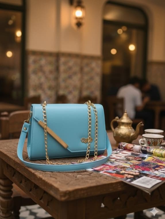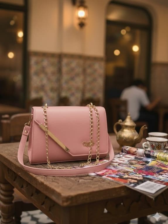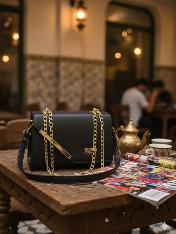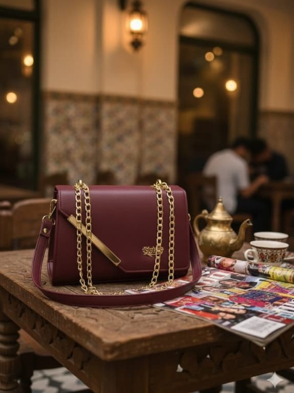 A stylish faux leather handbag with organized compartments, magnetic flap closure, and a long chain strap for versatile everyday use.