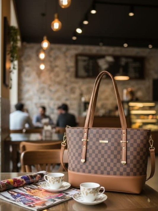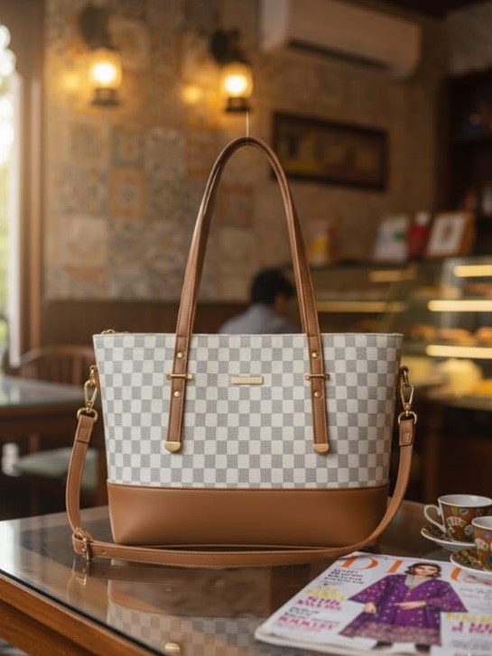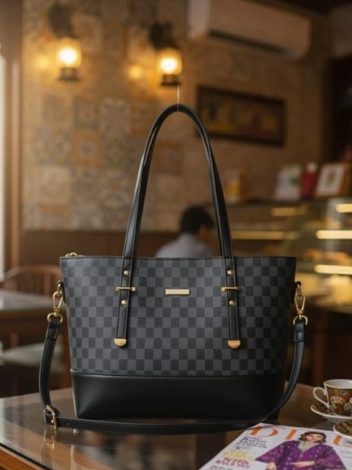 Upgrade your everyday style with this premium check-pattern tote designed to balance elegance and practicality. Crafted with a refined finish and a timeless check design, this tote complements both professional and casual outfits effortlessly. Its spacious interior allows you to carry daily essentials such as your phone, wallet, tablet, and personal items with ease, making it ideal for work, travel, or daily outings. The bag features strong top handles for classic hand carry, along with a detachable and adjustable long strap that lets you wear it comfortably on the shoulder or crossbody. A secure top zipper keeps your belongings safe, while the fully lined interior with an inner pocket helps maintain organization. Lightweight yet durable, this tote is built for everyday use while maintaining a polished, classy appearance.