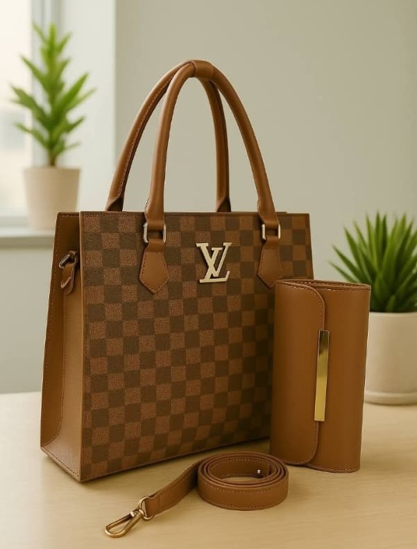 Premium export-quality 2-piece PU leather handbag set with a spacious interior, inner zip pocket, lined finish, and adjustable shoulder strap—ideal for daily and formal use.